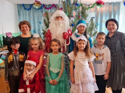 В новогодние праздники наша школа очень преобразился, стал праздничным, нарядным и более уютным. Детский смех, шутки и радость царили в школе А лучшей наградой для педагогов стали восторженные взгляды детей. Начались праздничные мероприятия с театрализованных игровых представлений, подготовленных педагогами школы.