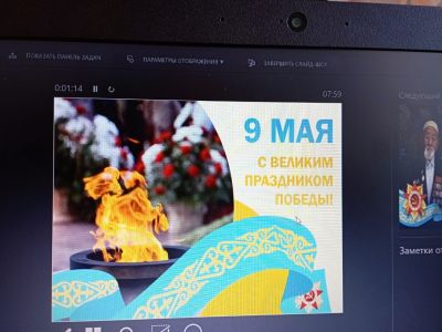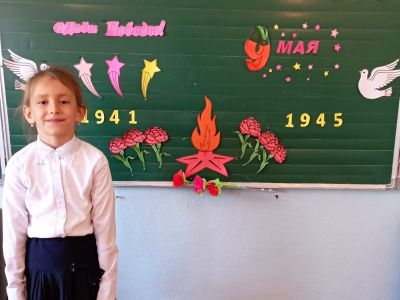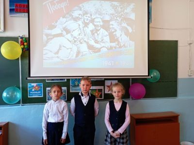 В школе проведены тематические классные часы, уроки мужества, акции. 6 мая вся школа участвовала в Уроке Победы. Урок Победы «Гордимся, помним!"», был посвящён страницам истории Великой Отечественной войны и героизму советского народа вставшего на защиту Родины. Кадры из военной хроники заставили школьников по-новому взглянуть на события военных лет. Война вошла в каждый дом, в судьбы многих людей. Война напоминает нам о себе через те истории, которые хранятся в каждой семье. Вспоминая, мы открываем целую страницу истории человеческого благородства, героизма и мужества советского солдата. Сам Урок Победы проходил в актовом зале школы. Сцена была оформлена цветами и шарами, перевязанными георгиевской лентой. Звучали фанфары, школа замерла в торжественном ожидании. В ходе Урока включались видеозаписи бесед с теми, кто воевал или был детьми в годы ВОВ. Ребята услышали о том, как было трудно, какой был голод и разруха. Но люди выдержали, потому что верили в Победу. Из их слов было понятно, что наступивший День Победы был праздником со слезами на глазах..