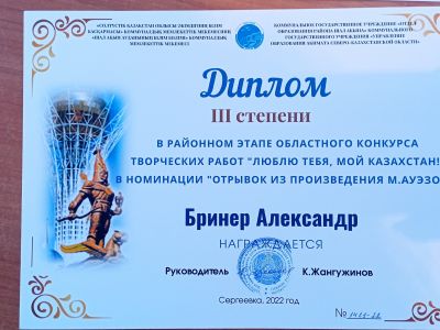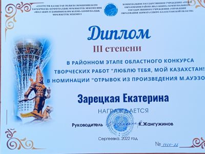 Участие в районном конкурсе «Люблю тебя мой Казахстан!» дата 15 декабря